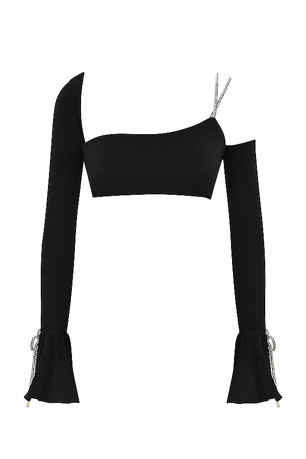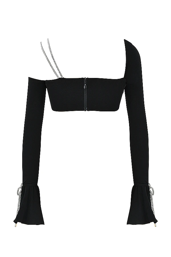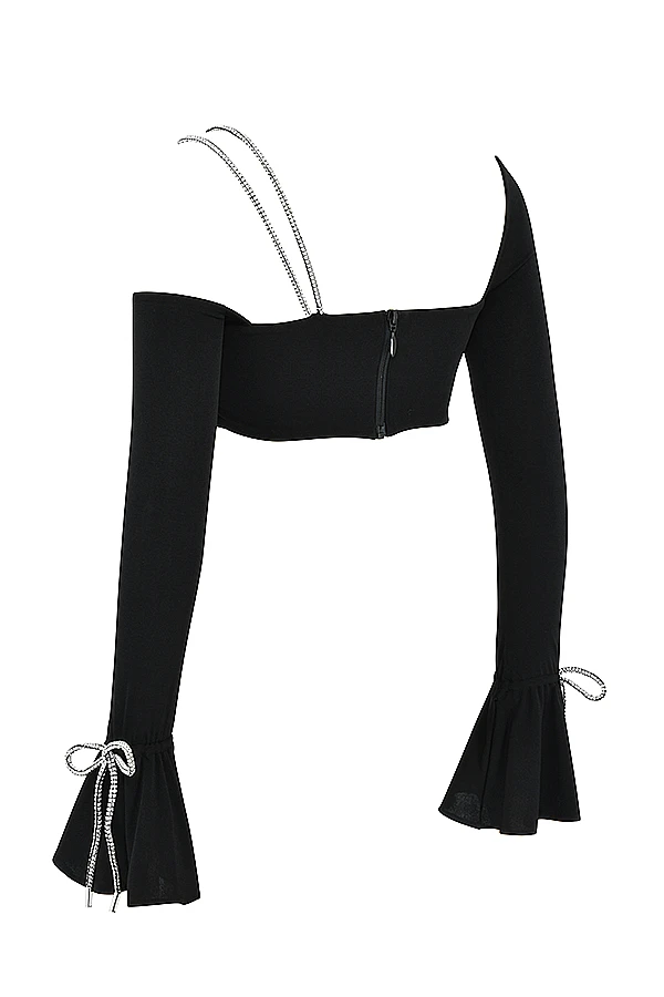 Every party season requires a touch of sparkle and our ‚June‘ Top doesn’t disappoint. Cut from a weighted stretch jersey that skims your figure, it features a bandeau style and detailed with shimmering crystal rope trim shoulder straps and bows to the fluted cuffs that glisten beautifully in the light. The body is fully lined for comfort and it has a zip to the back for easy on. Wear yous with our ‚Maylene‘ skirt.