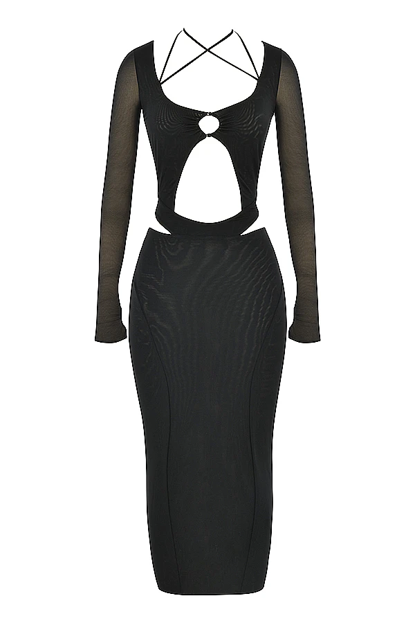 One of the anchors of our Black Orchid Collection, ‚Marina‘ is beautifully sculpted with strategic cutouts to enhance your figure. It’s cut from a stretch mesh in timeless black and has our infamous powermesh to the inner layer that acts like shapewear within the dress for the smoothest most sculpting fit.
