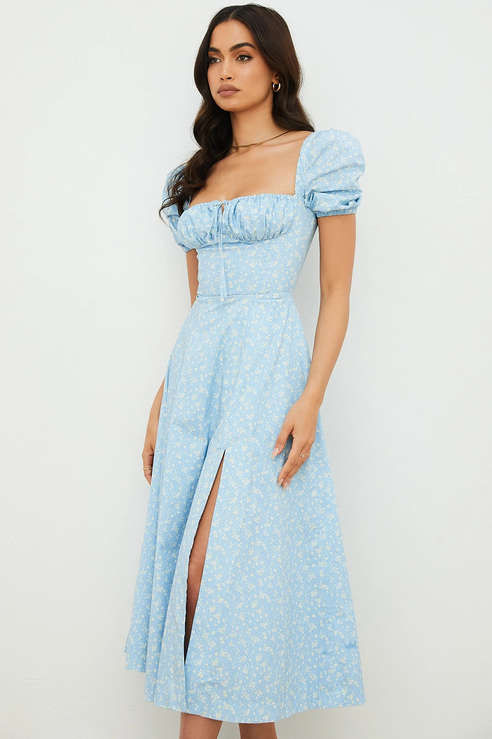 The pretty puff sleeves add to the fun and floaty vibe of ‚Tallulah‘ and we love the way that the side thigh split shows just a flash of thigh as you walk. ‚Tallulah‘ is just perfect for girls who wanna be girls who wanna be sexy.