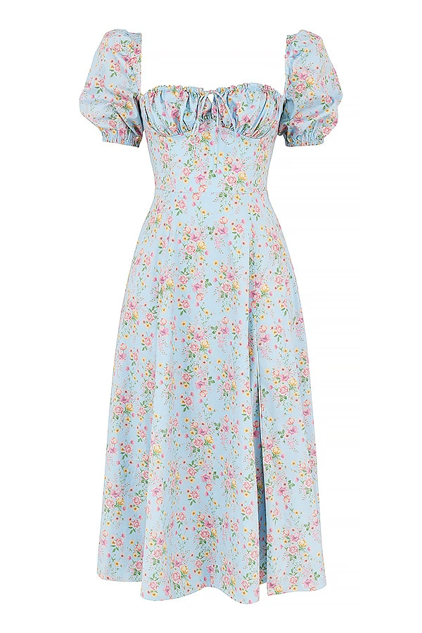 The pretty puff sleeves add to the fun and floaty vibe of ‚Tallulah‘ and we love the way that the side thigh split shows just a flash of thigh as you walk. ‚Tallulah‘ is just perfect for girls who wanna be girls who wanna be sexy.
