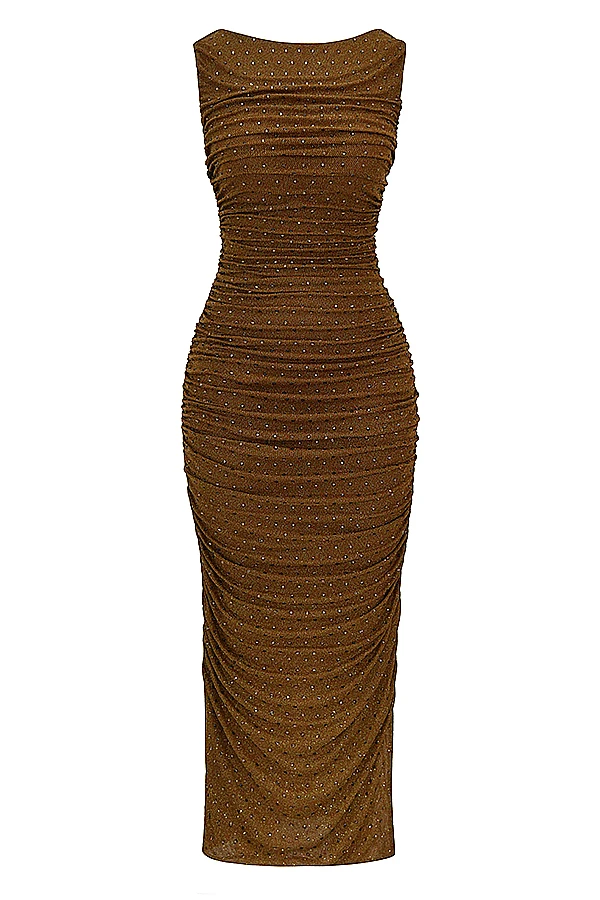 ‚Paris‘ heels in brown patent and a tonal clutch.