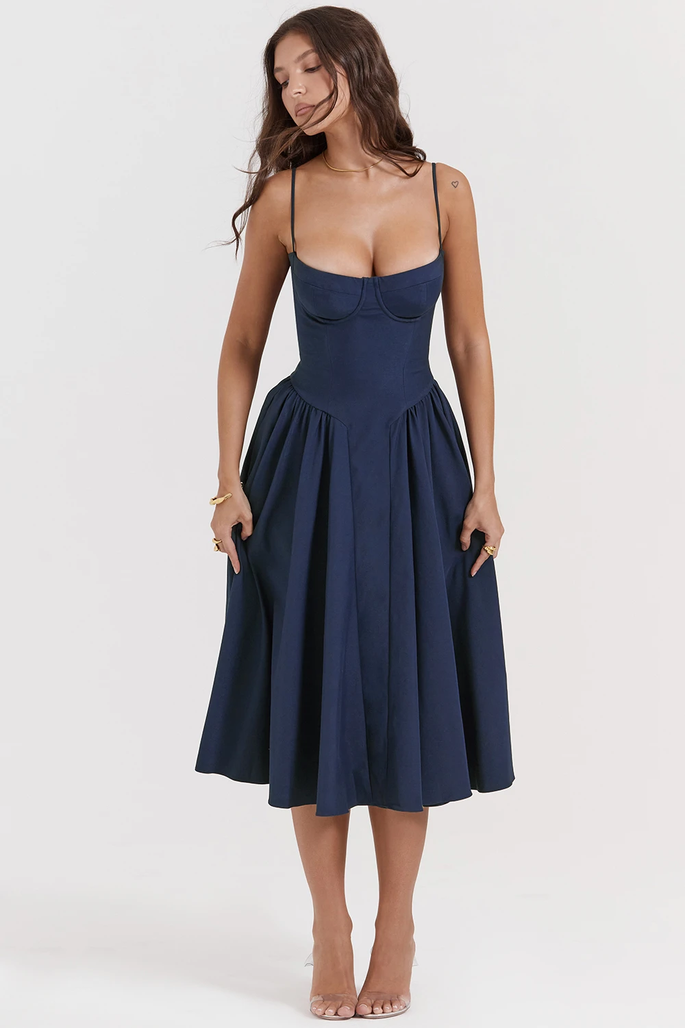 ‚Samaria‘ has pockets and is fully lined for comfort with a zip to the back for easy on. Wear yours with dainty heels like ‚Lola‘. The ‚Regular‘ cup option suits cup size A-C whilst the ‚Bigger‘ cup option suits cup size D-E.