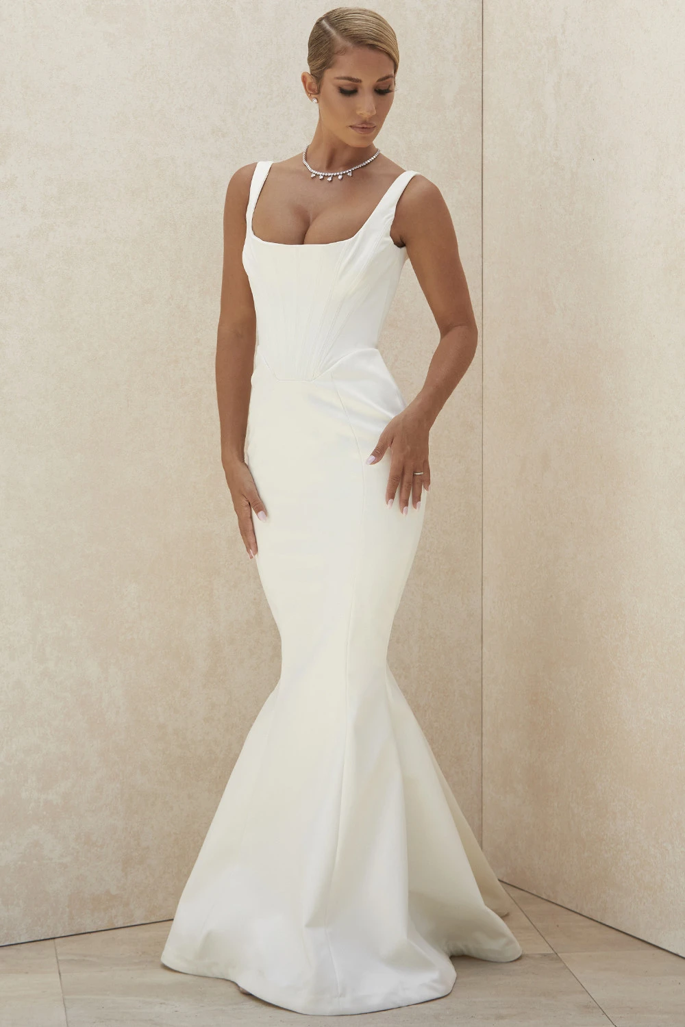 Made from stretch Duchesse satin. Fully lined.