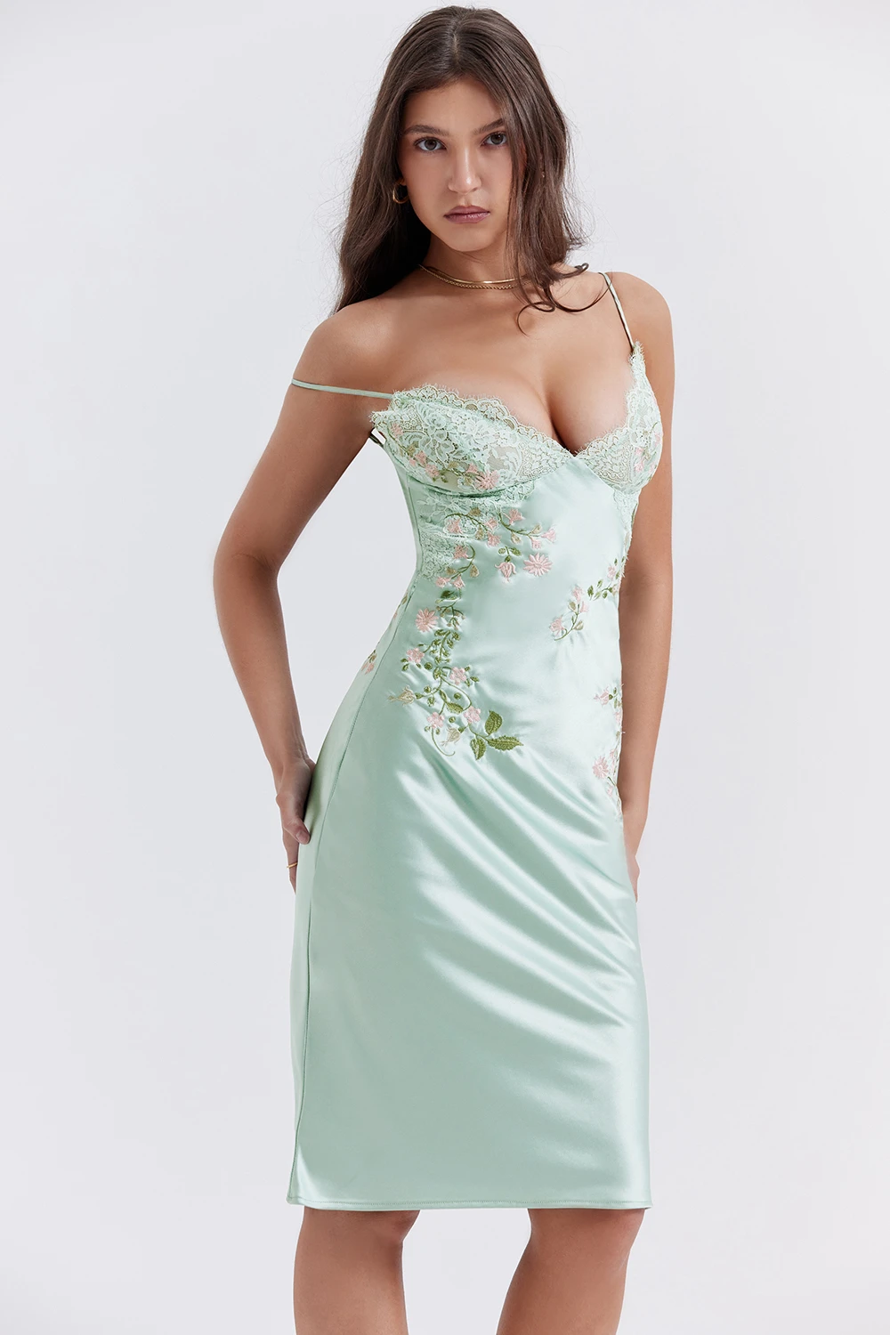 The adjustable slender straps frame the sweetheart neckline and it has a zip and button fastening to the back for easy on. Wear yours with equally dainty heels like ‚Lucent‘. The ‚Regular Cup‘ option suits cup size A-C whilst the ‚Bigger Cup‘ option suits cup size D-E.