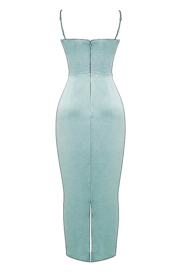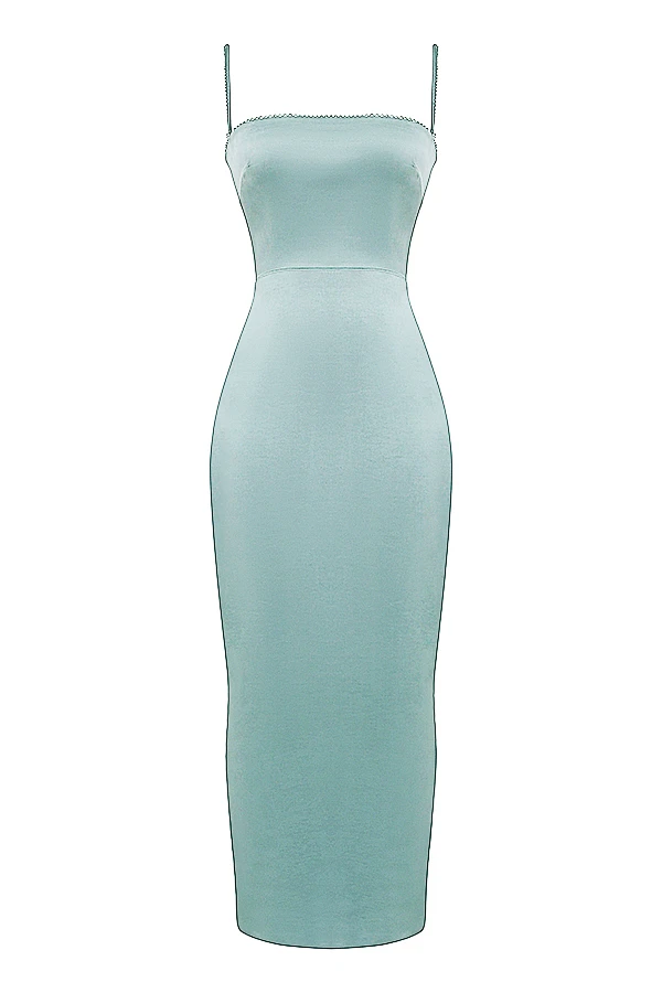 Simplicity at its most elegant in our ‚Costanza‘ dress, cut from luxurious sheen satin in a gorgeous light jade. The bodice features our signature corsetry boning to the sides for a structured fit and the sleek silhouette will hug your curves to perfection. We love the scalloped trim and the barely there straps adjust for the perfect fit.