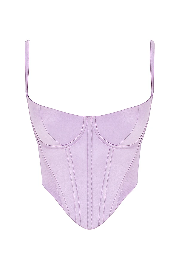 The delicate orchid hue is a spring season favourite and ‚Tamsin‘ is our pretty new addition. Cut from our lustrous duchess satin makes ‚Tamsin‘ so elegant, it features balcony underwired cups for uplifting cleavage and boned through the front and back to cinch the fit for a tiny waist.