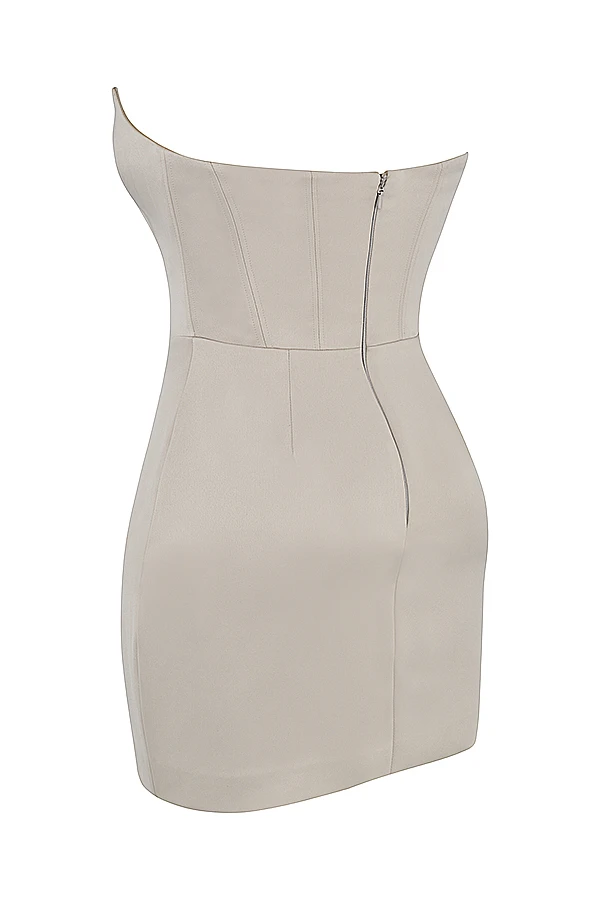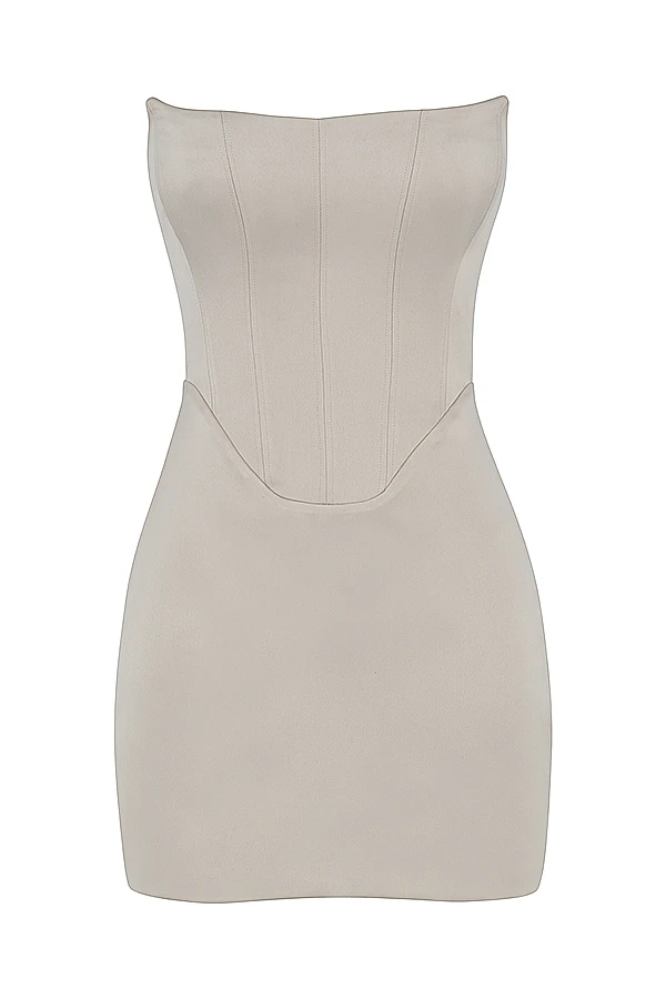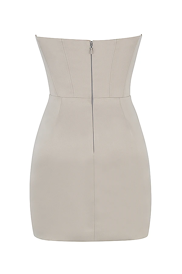 Our ‚Magdalena‘ dress is an elegant option for romantic date nights or special occasions. Cut from our lustrous duchess satin in a beautiful oyster hue. ‚Magdalena‘ has an inner corset that holds together the flattering strapless silhouette and cinches the waist in for an ultra feminine hourglass shape.