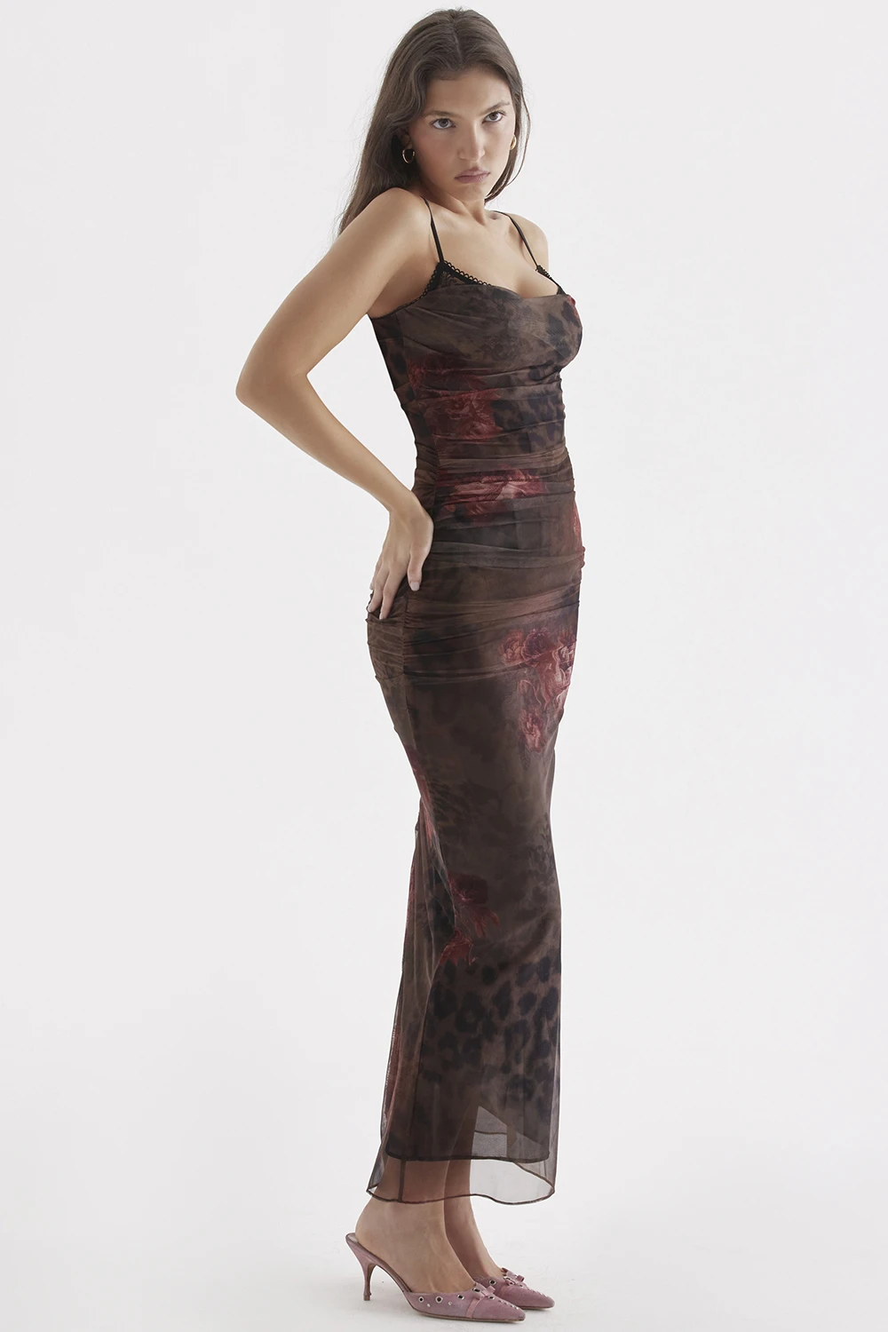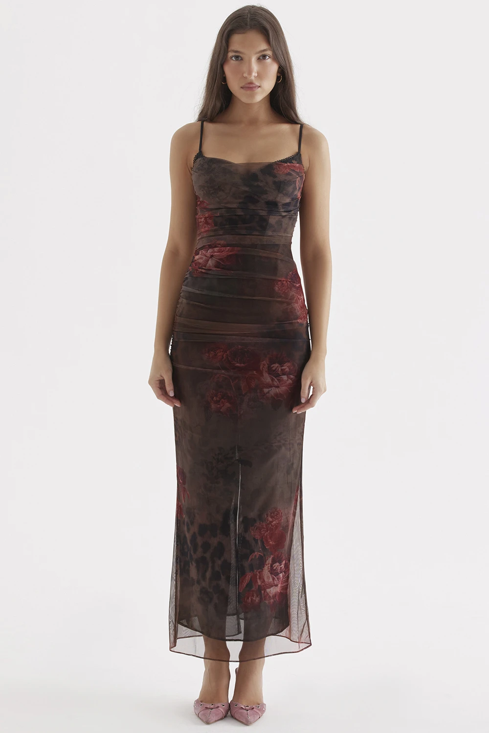 Made from soft stretch mesh, satin and lace. Fully lined.