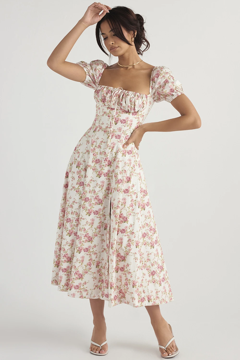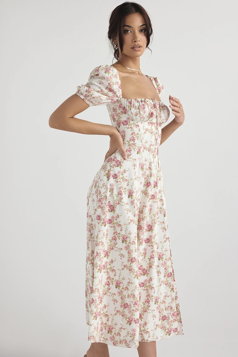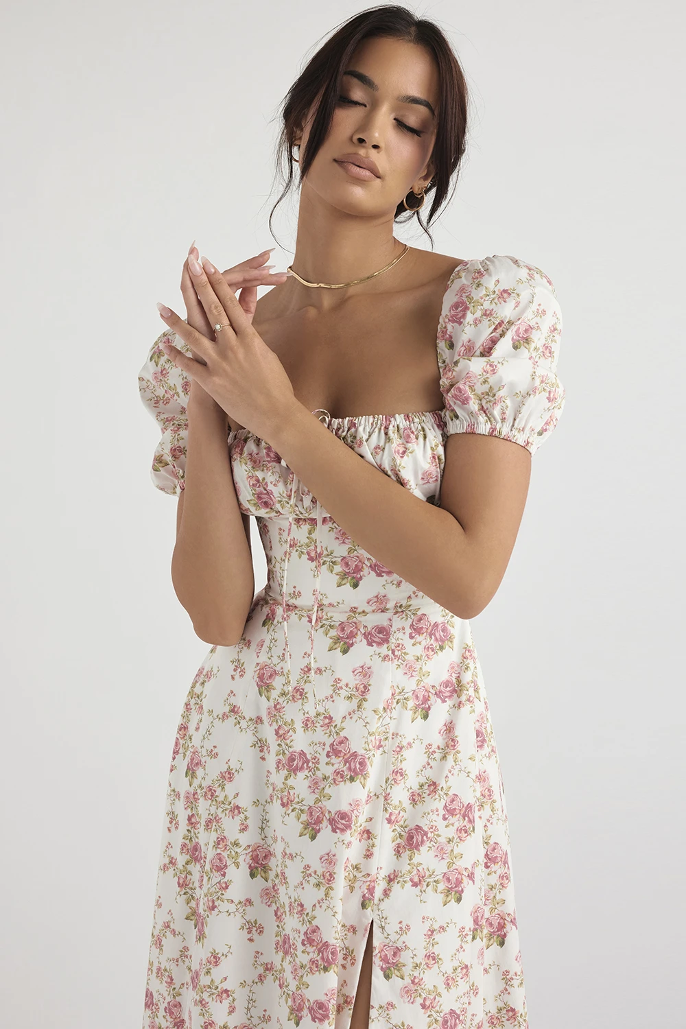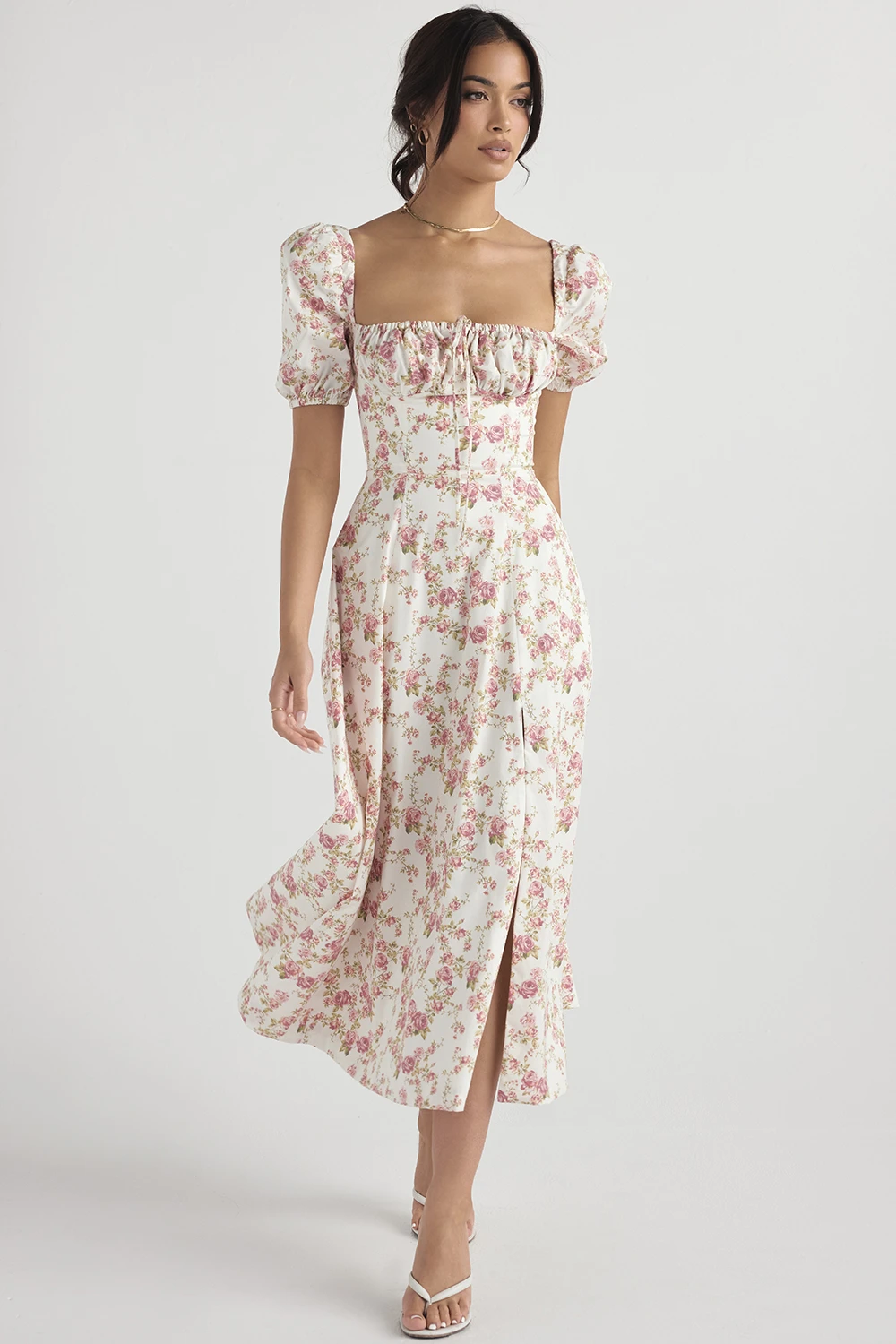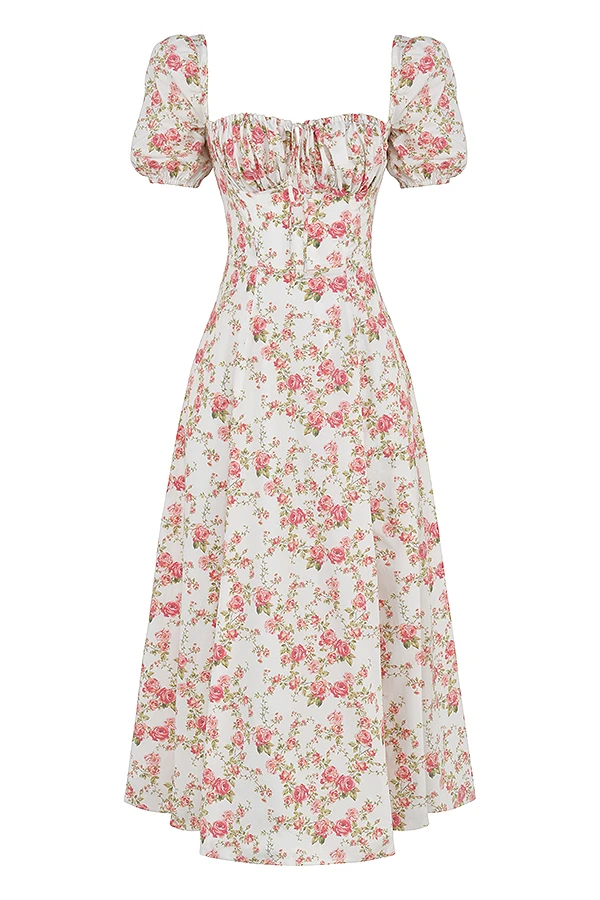 The pretty puff sleeves add to the fun and floaty vibe of ‚Tallulah‘ and we love the way that the side thigh split shows just a flash of thigh as you walk. ‚Tallulah‘ is just perfect for girls who wanna be girls who wanna be sexy.
