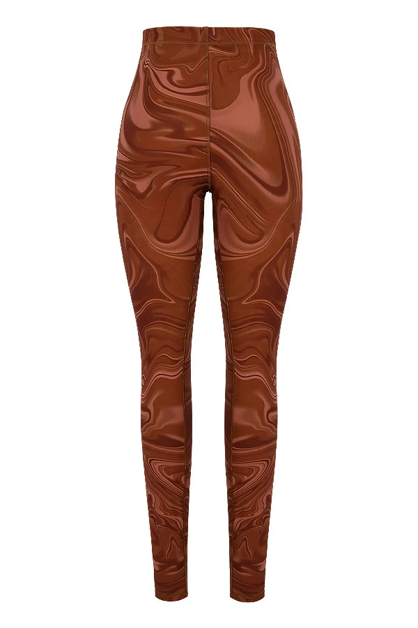They sit high on the natural waist that is oh-so flattering and gives the illusion of a tiny waist with an elasticated waistband for a pull on style. ‚Violet‘ make a bold statement on their own and look even more luxurious when styled with the ‚Sabine‘ Brown Swirl Mesh Halter Bodysuit for a super feminine put together look.