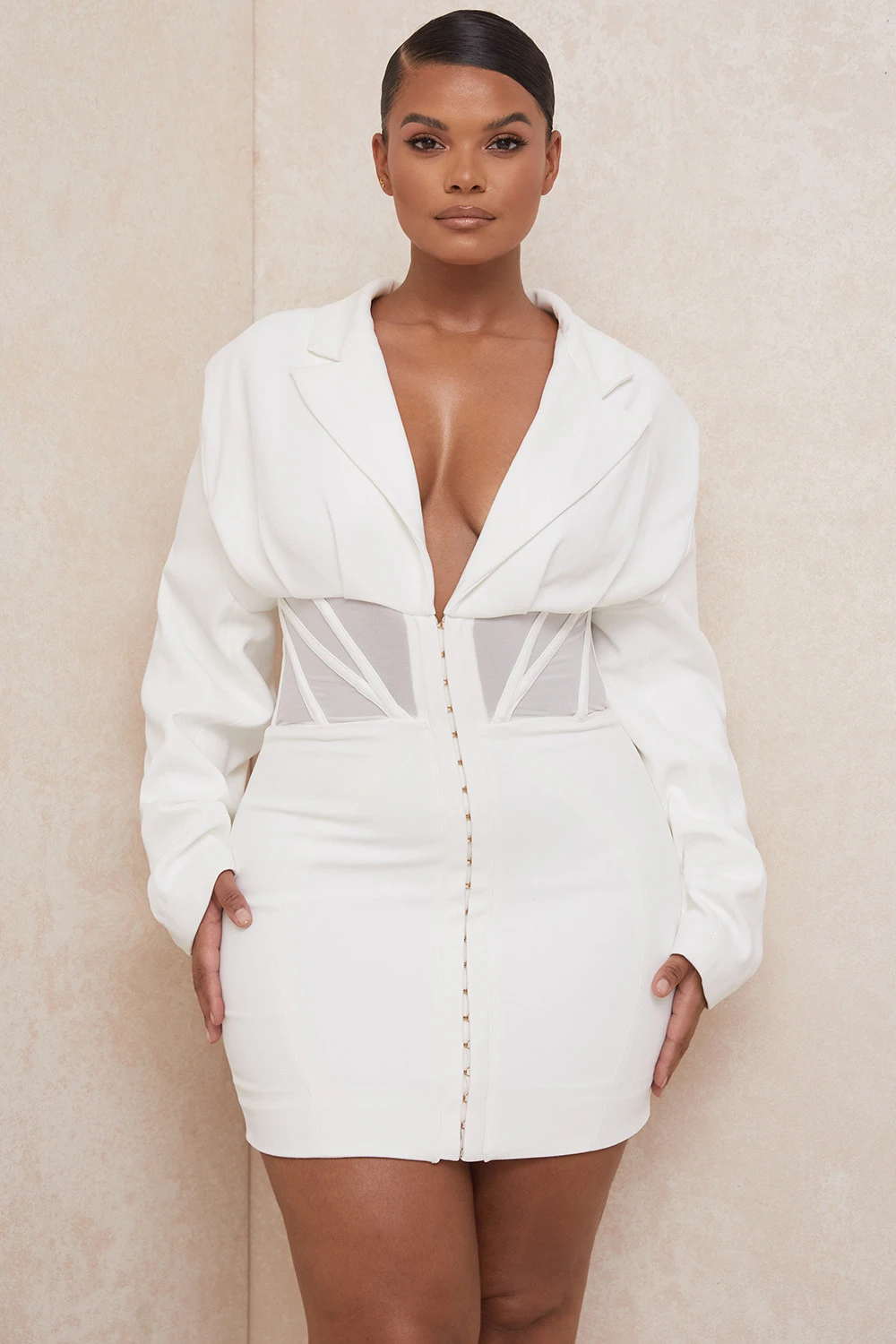 When it comes to elevated dressing, we know how to tick all the right boxes. Tailored from white crepe, ‚Anine‘ has sharp styling and a boned power mesh corset to the waist. It has hook and eye detailing to the centre and is fully lined for the most comfortable of fits. Wear yours with tonal pumps for that power vibe.