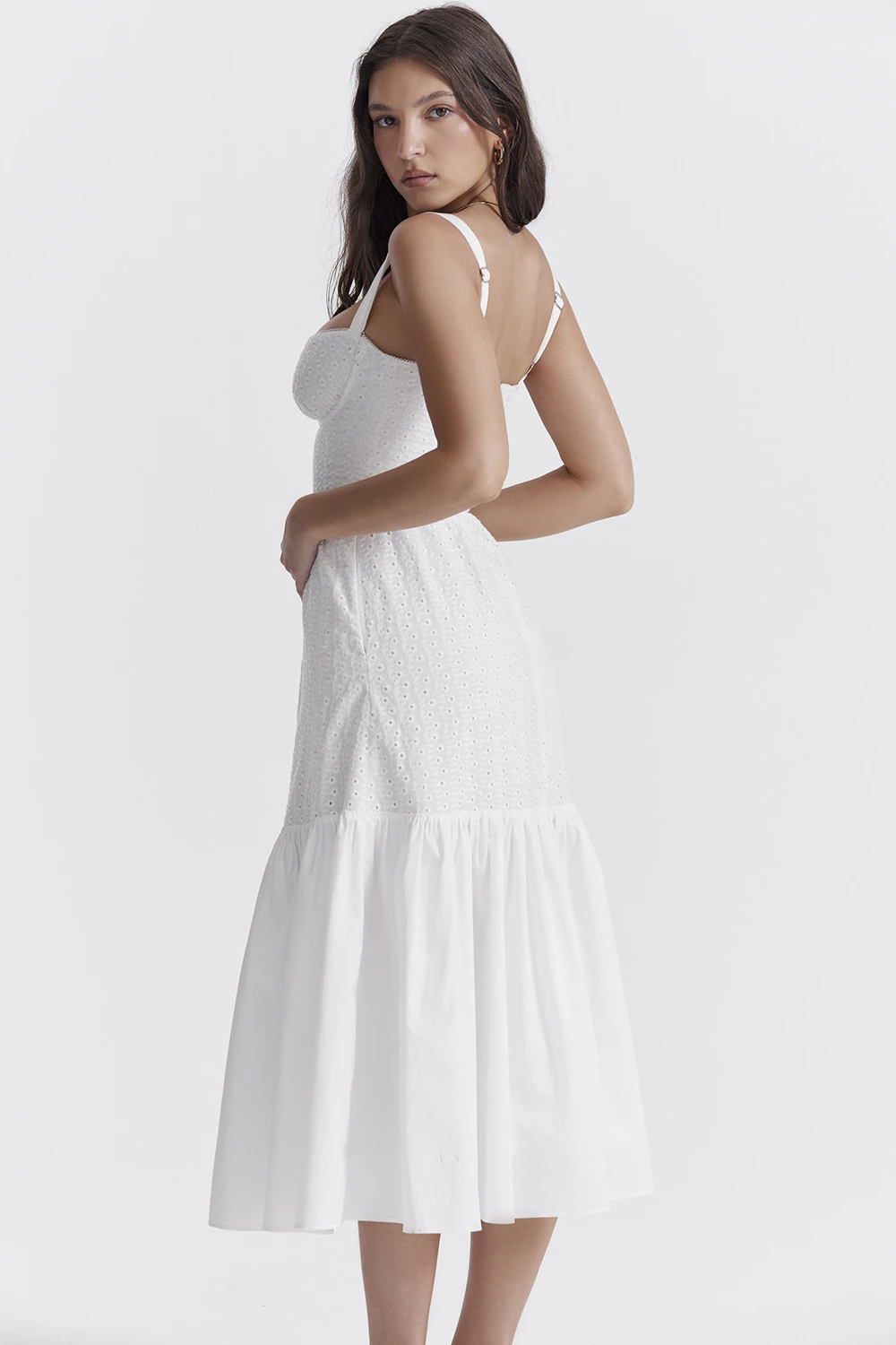 Made from broderie anglaise and stretch cotton. Fully lined.