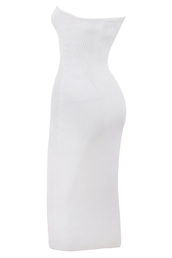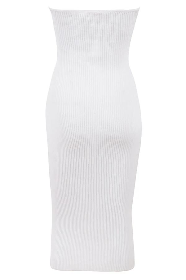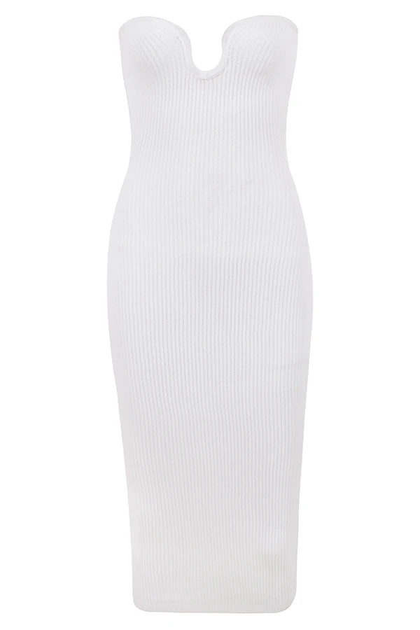 Sculpting and stretchy ribbed knit dresses are so flattering and effortlessly stylish, making our ‚Oriana‘ midi dress a season favourite. It’s cut for a body skimming fit and has a notched sweetheart neckline in a strapless silhouette that’s fitted with an inbuilt wire to keep the shape. It falls below the knee in a classic midi length and pulls on for easy wear. Team yours with our ‚Ghost‘ Clear strap sandals.