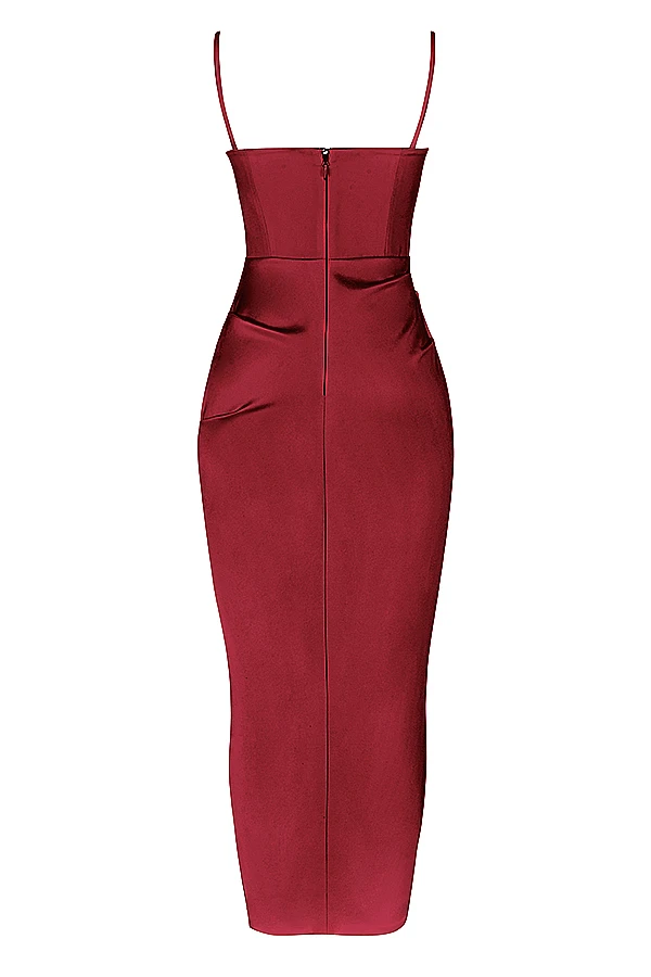 ‚Flora‘ is our most elegant creation to date and the dress you’ve been waiting for. Cut from our ultra luxe and lustrous duchess satin, it features our incredible corsetry boning to cinch the waist and has beautifully pleated underwired cups to focus firmly on the finer details. The neckline, slender straps and elegant draping make ‚Flora‘ ultra flattering and we love the split to the skirt to reveal a little leg.
