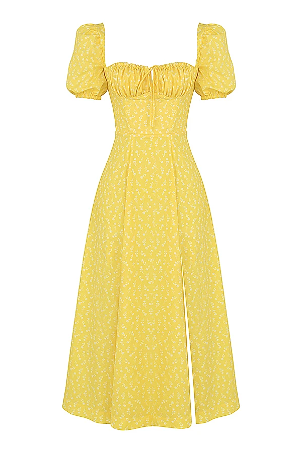 The pretty puff sleeves add to the fun and floaty vibe of ‚Tallulah‘ and we love the way that the side thigh split shows just a flash of thigh as you walk. ‚Tallulah‘ is just perfect for girls who wanna be girls who wanna be sexy.